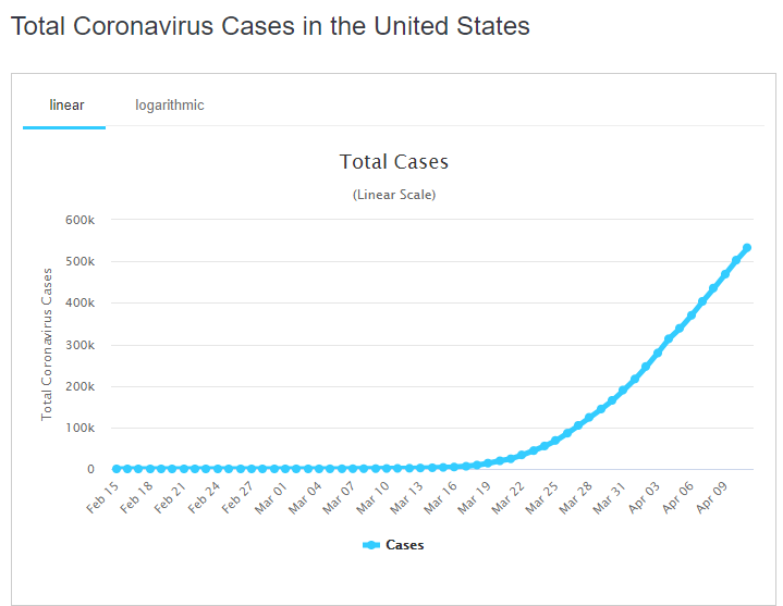 Statele Unite ale Americii sunt cea mai afectată țară de epidemia de coronavirus. Conform Worlmeters.info, în SUA sunt 550.655 de cazuri confirmate, dintre acestea 21.667 de decese și 31.120 persoane recuperate total.