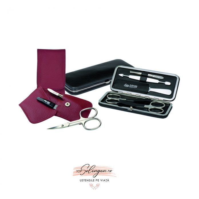 Optează pentru o trusa manichiură Solingen pe care o vei alege în funcție de nevoile tale și care te va ajuta să realizezi o manichiură ca la carte. Trusele de manichiură Solingen sunt disponibile în variante de 2 piese, dar le găsești și în variante complexe, de până la 7 piese pentru manichiură (forfecuță de cuticule, forfecuță de unghii, pensetă, pilă, chiuretă, clește pentru unghii, spatulă pentru împingerea cuticulelor).
